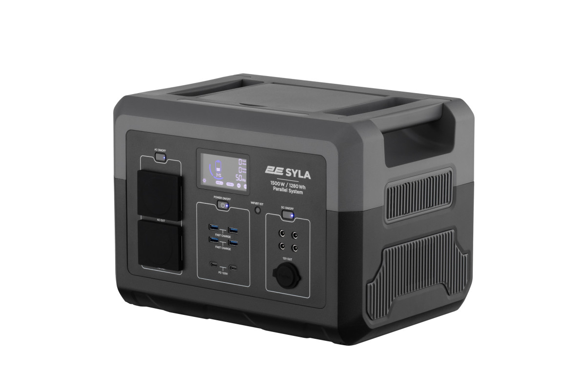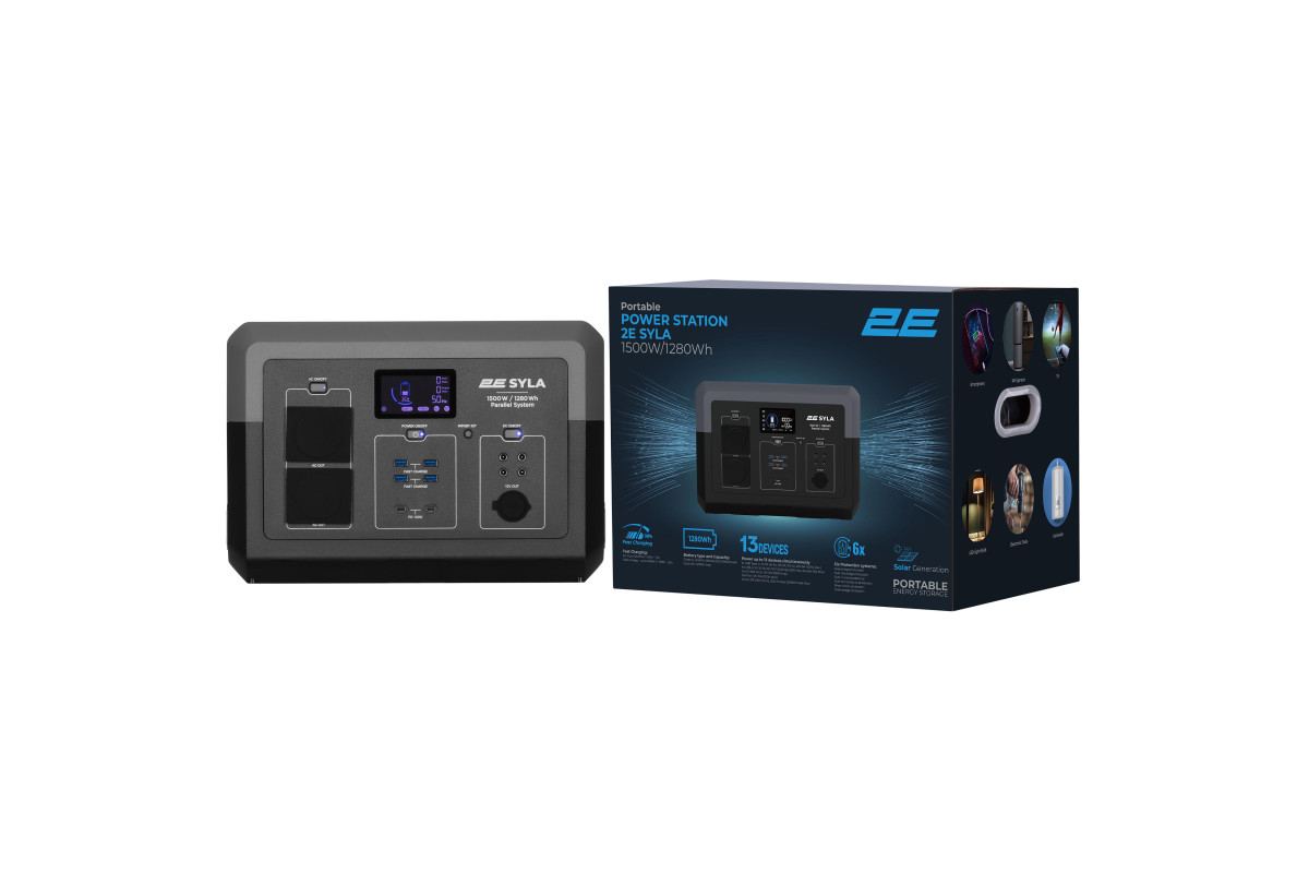 Іноваційна та потужна портативна зарядна станція 2E SYLA нового покоління з номінальною потужністю інвертора та чистою синусоїдою в 1500Вт (та 3000Вт пікової) і ємністю акумулятора LiFePO4 в 1280 Вт/год.