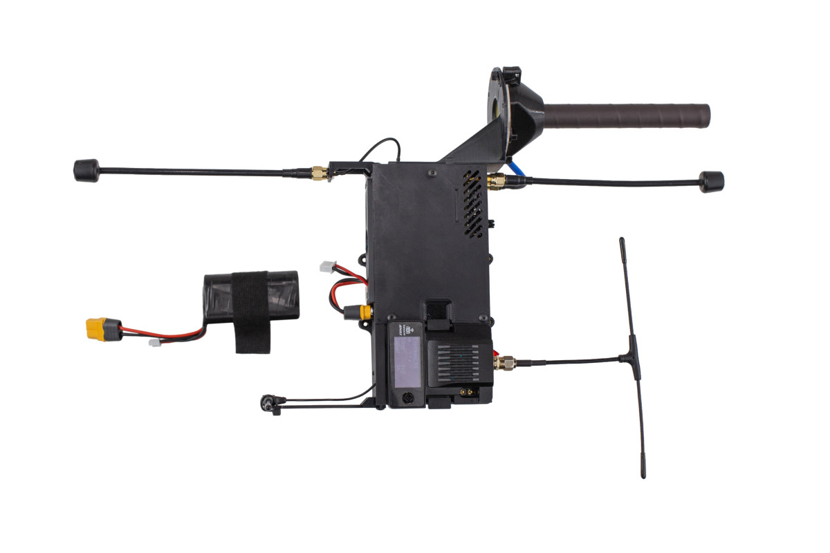 Що таке ретранслятор і чому він закріпений на мавіку? Ретранслятор працює як виносна антена, їх різниця в тому, що виносна антена передає сигнал до пілота по кабелю, а ретранслятор без. Навіщо це зроблено? На деяких ділянках фронту робота виносної антени стає некоректною. Її роботі можуть заважати дерева, будівлі, висоти, западини та подібні речі. Ще нещодавно ці питання вирішувалися підйомом антени на 8-12 метрів, але таке рішення викликало немобліність та легку помітність на прифронтовій частині. У такого рішення також є і плюси, вони прописані в описі виносних антен. Наразі рішення повітряного ретранслятора дуже актуальне. Він використовуєтся на платформах з цифрою (типу мавік 3, мавік 3 про, матріс та інші) це дає змогу працювати обом приладам без прешкод, адже наш ретранслятор працює на аналоговому зв`язку. Рішення ретранслятора дає змогу працювати на будь-яких ділянках фронту без перешкод. Направлену антену, що розміщена на ретрансляторі можна направляти у западини, висоти та інші тяжко доступні місця, це дає змогу підсилити зв`язок в цьому напрямі. Такий ретранслятор дуже мобільний, його легко перевозити на інші позиції та в нього є змога швидко замінювати акумулятори. В комплекті йдуть 2 акумулятори по 40 хв роботи один. Акумулятор на ретрансляторі змінний. Діапазон роботи ретранслятора 15 кілометрів.