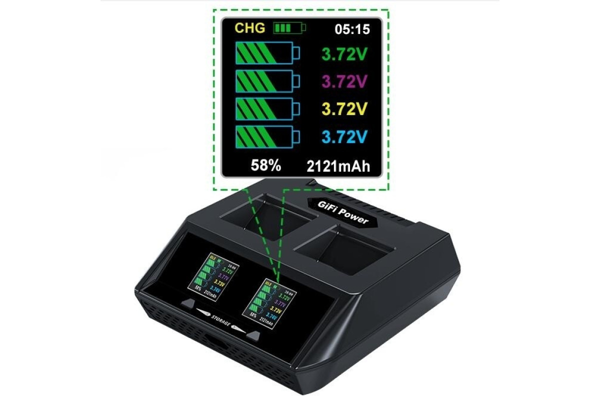 За допомогою нового зарядного пристрою Fast Balance Charger із функцією інтелектуального й швидкого заряджання вдасться відновити заряд одразу двох акумуляторів. А за використання зарядного пристрою з комплекту дрона можна заряджати навіть три батареї для БПЛА!